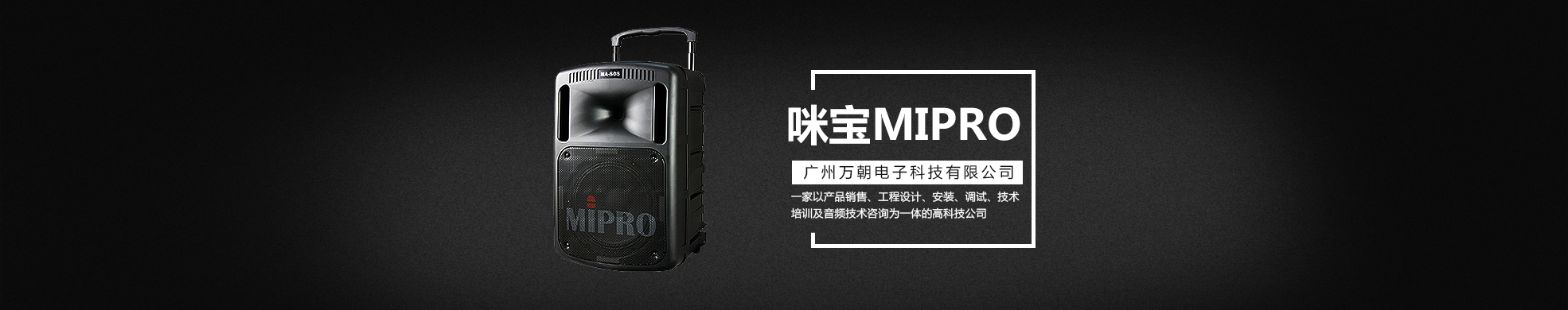 廣州萬朝電子科技有限公司成立于2008年,公司主要是一家以產(chǎn)品銷售、工程設(shè)計(jì)、安裝、調(diào)試、技術(shù)培訓(xùn)及音頻技術(shù)咨詢?yōu)橐惑w的高科技公司。主要代理銷售產(chǎn)品包括:咪寶MIPRO,舒爾SHURE,森海塞爾SENNHEISER,BOSE專業(yè)音箱,JBL系列音箱,皇冠CROWN功放,QSC功放,聲藝SOUNDCRAFT調(diào)音臺(tái),雅馬哈YAMAHA,DBX及AKG等周邊器材。